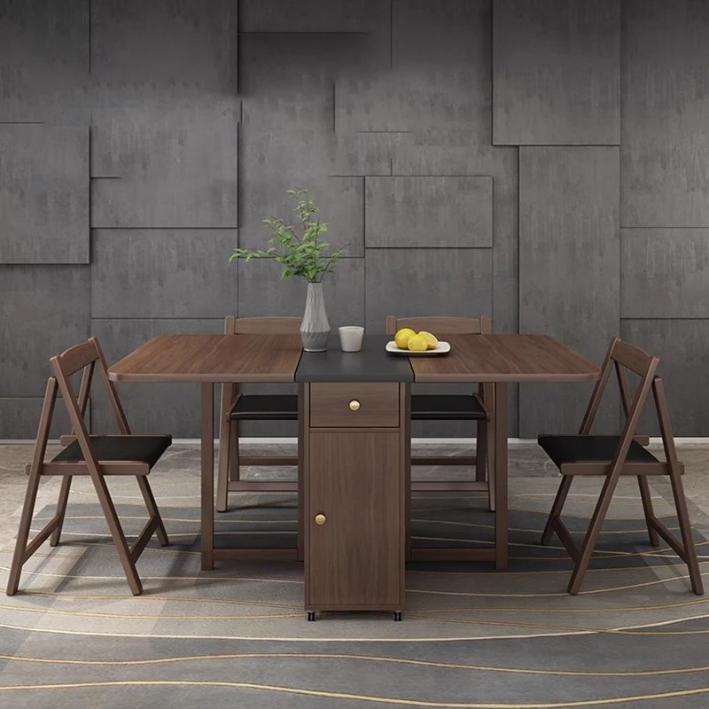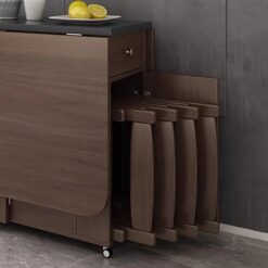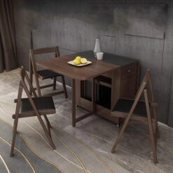 Bàn ăn đa năng với thiết kế thông minh 3 trong 1: tủ lưu trữ, bàn ăn và ghế gấp. Sản phẩm có cấu trúc tủ trung tâm với mặt bàn có thể mở rộng, 4 ghế gấp được cất gọn bên trong tủ, mang đến giải pháp tối ưu cho không gian sống hiện đại.