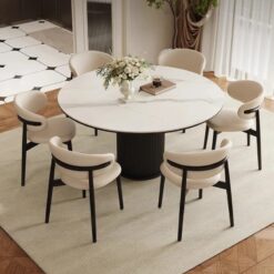 - Mặt bàn tròn tạo không gian thân mật