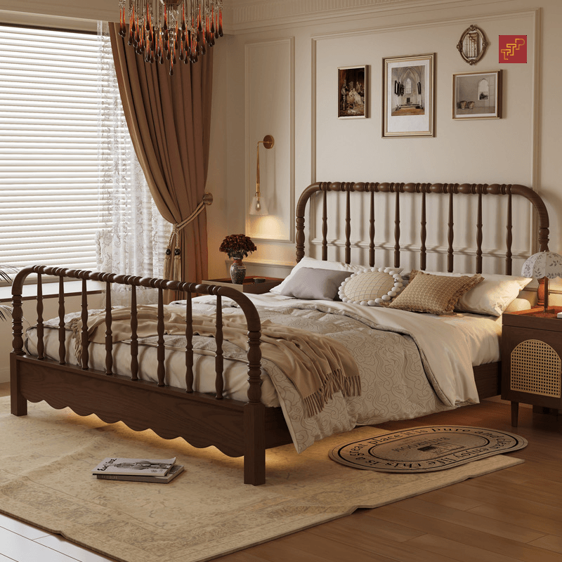 | Tên đầy đủ | Giường Gỗ Sồi Vintage Spindle Đèn LED Cổ Điển |