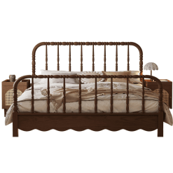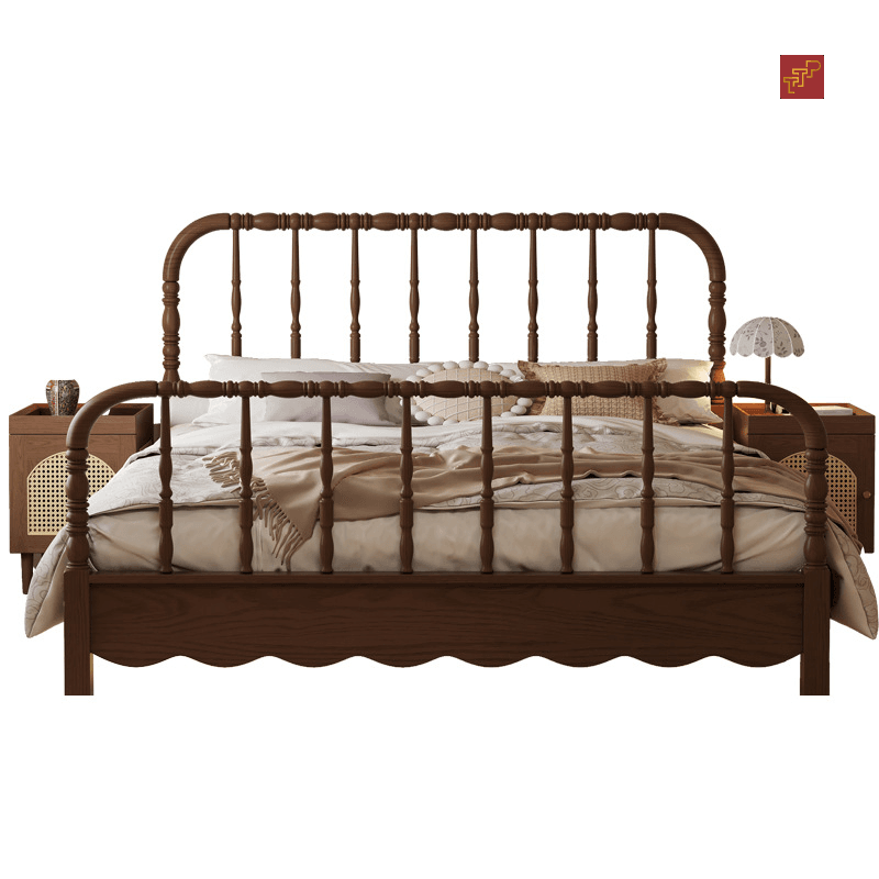 Giường gỗ sồi GGT008 là hiện thân của phong cách American Farmhouse cổ điển – nơi nghệ thuật phay tiện thủ công gặp gỡ thiết kế ấm cúng của nông trại Mỹ thế kỷ 19. Với hàng chục trụ tròn spindle xếp liền mạch, trụ xoắn hai bên uy nghiêm và đèn LED âm gầm lãng mạn, chiếc giường này mang đến không gian ngủ vừa hoài cổ vừa tinh tế. Đây là lựa chọn hoàn hảo cho những ai yêu thích vẻ đẹp vintage đích thực, muốn biến phòng ngủ thành góc nhỏ ấm áp như những ngôi nhà nông trại cổ kính ở miền quê nước Mỹ.