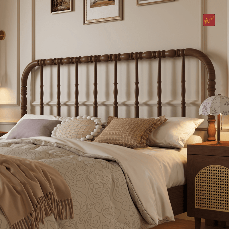 Kỹ thuật trụ xoắn xuất hiện trong kiến trúc Gothic châu Âu từ thế kỷ 12, biểu tượng cho sự vững chắc và quyền uy. Khi lan sang Mỹ, nghệ nhân Farmhouse đơn giản hóa nhưng giữ nguyên tinh thần “uy nghiêm mà ấm áp”. Trụ xoắn không chỉ đẹp mà còn tăng độ bền kết cấu, giúp giường chịu lực tốt hơn 30% so với trụ thẳng.