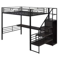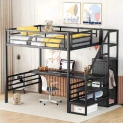 Giường Tầng Khung Sắt GTKS001 là giải pháp nội thất thông minh cho phòng ngủ nhỏ, kết hợp hoàn hảo giữa giường ngủ, bàn làm việc, kệ sách và tủ lưu trữ trong một sản phẩm. Thiết kế phong cách công nghiệp hiện đại với khung sắt sơn đen mờ sang trọng.