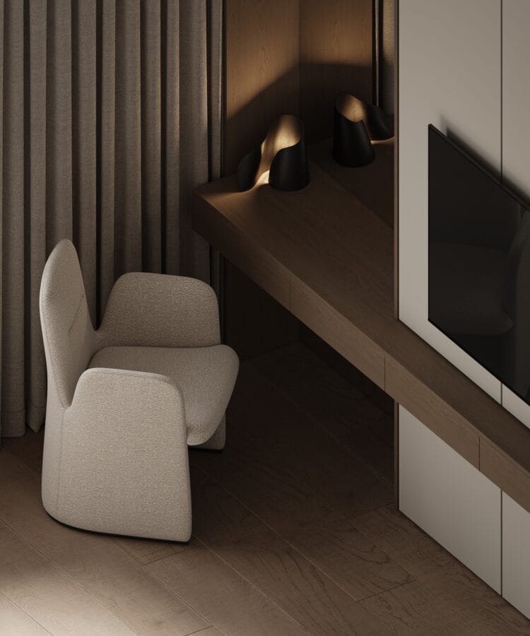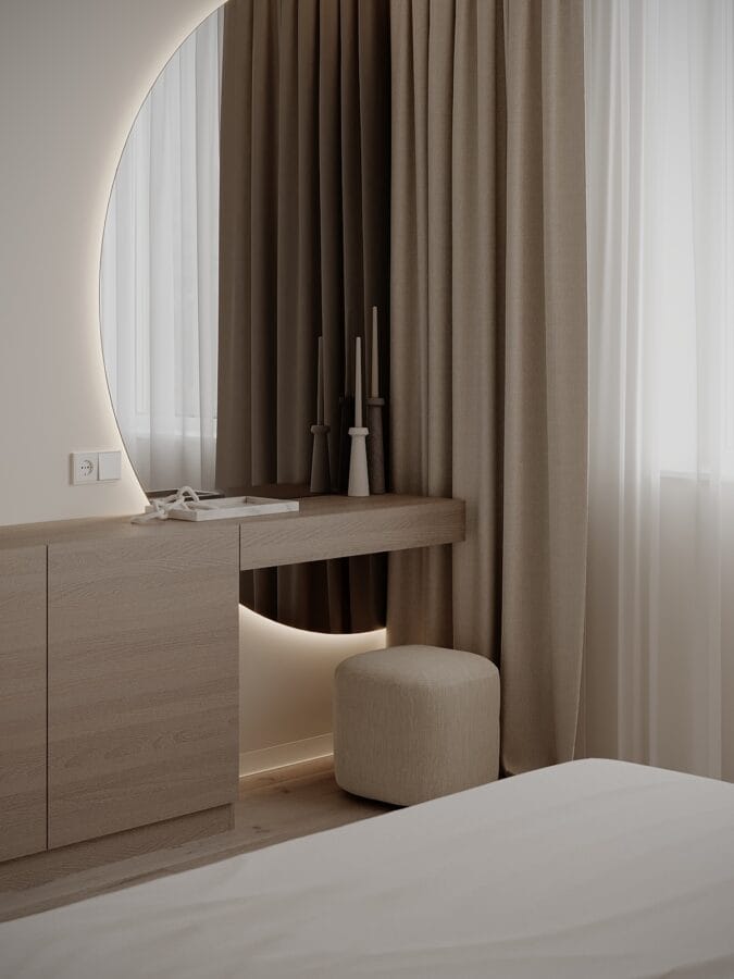 - Màu sắc trung tính: Sử dụng tông màu be, xám, trắng ngà tạo không gian thư giãn
