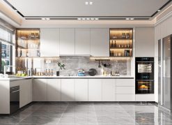Tủ Bếp Gỗ MDF Acrylic Trắng Xám Phong Cách Hiện Đại – Xưởng Gỗ TTP – TBHD001