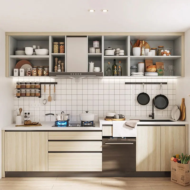 - Kệ mở trang trí: Để gia vị, ly tách, tạo điểm nhấn