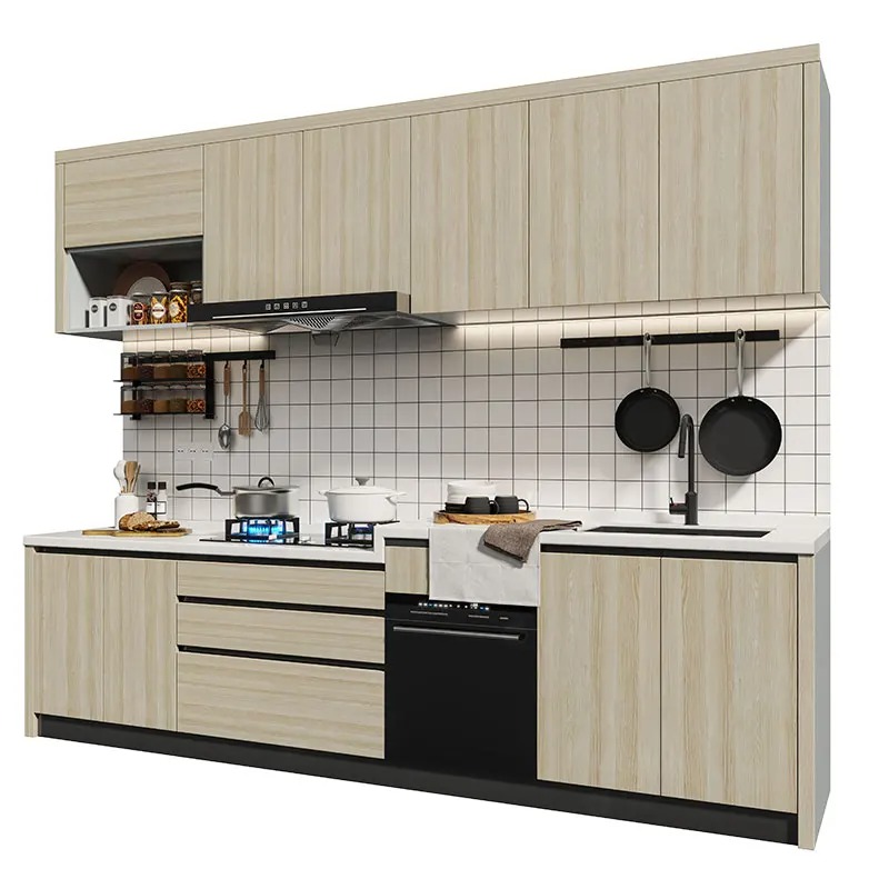 Tủ Bếp Phong Cách Nhật Bản TBNB001 là sản phẩm nội thất bếp cao cấp với thiết kế tối giản, ấm áp. Vân gỗ sồi tự nhiên kết hợp viền đen tạo điểm nhấn tinh tế, ốp tường gạch trắng 10×10cm kiểu subway tile cổ điển mang lại không gian bếp thanh lịch, gần gũi.